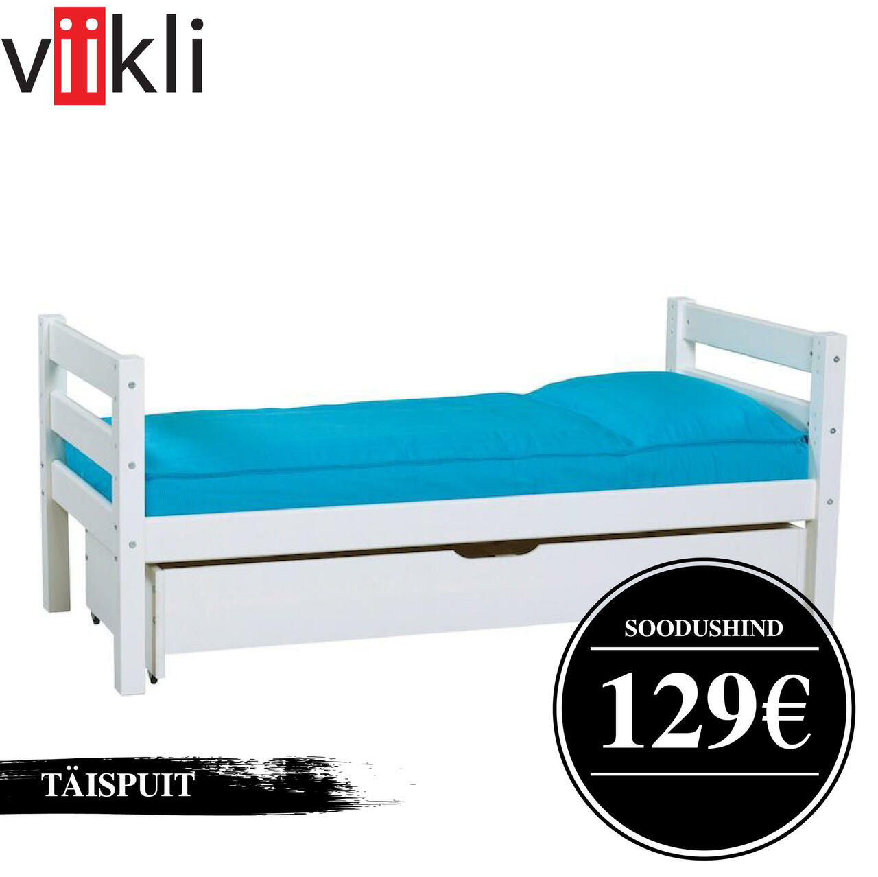 Piltidel näha olev madrats, voodialune kast ja pikk lisa turvaäär müüake eraldi
